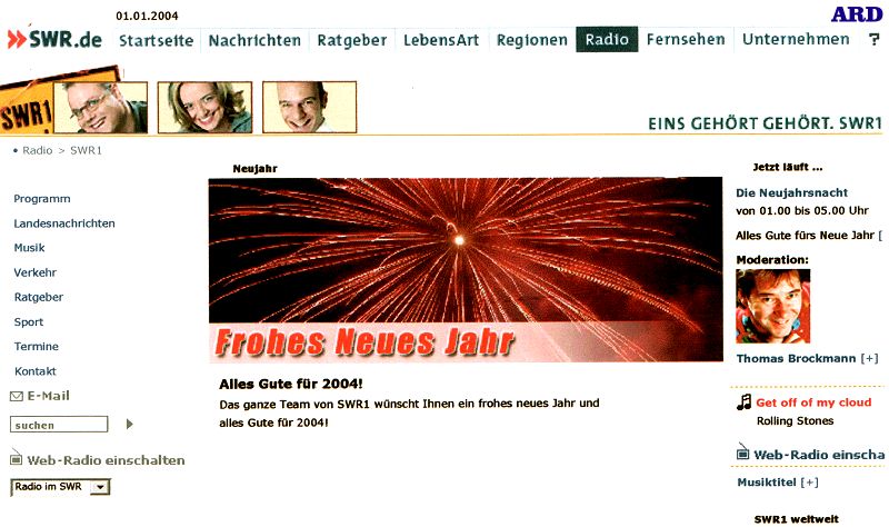 * Silvester-/Neujahrsnacht im SWR1-Programm (Ausschnitt aus der SWR-Homepage) *